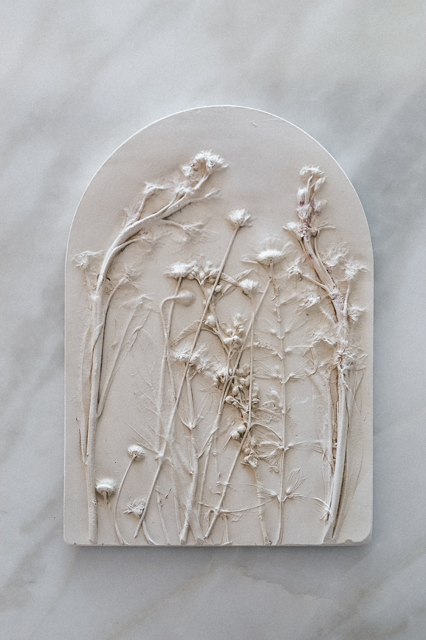 One by one, the artist has gathered wildflowers and quietly preserved a piece of their beauty for years to come through the practice of bas-relief plaster.