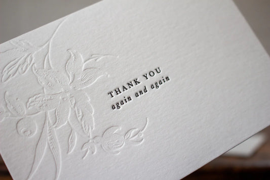 'Thank you again and again' Letterpress Card