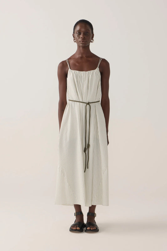 Sold outThe Demi Dress in Navy Stripe Poplin