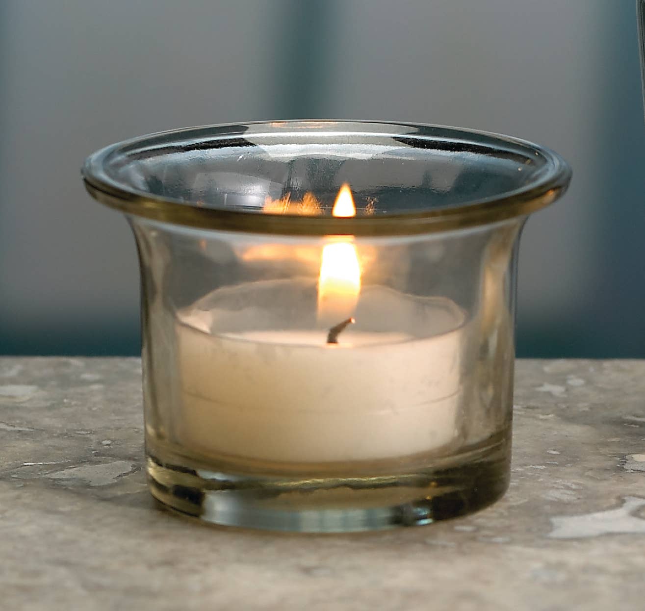 Illuminate your space with this simple Oyster Glass Tealight Holder. These holders are designed to enhance the ambiance of your home with their timeless elegance.