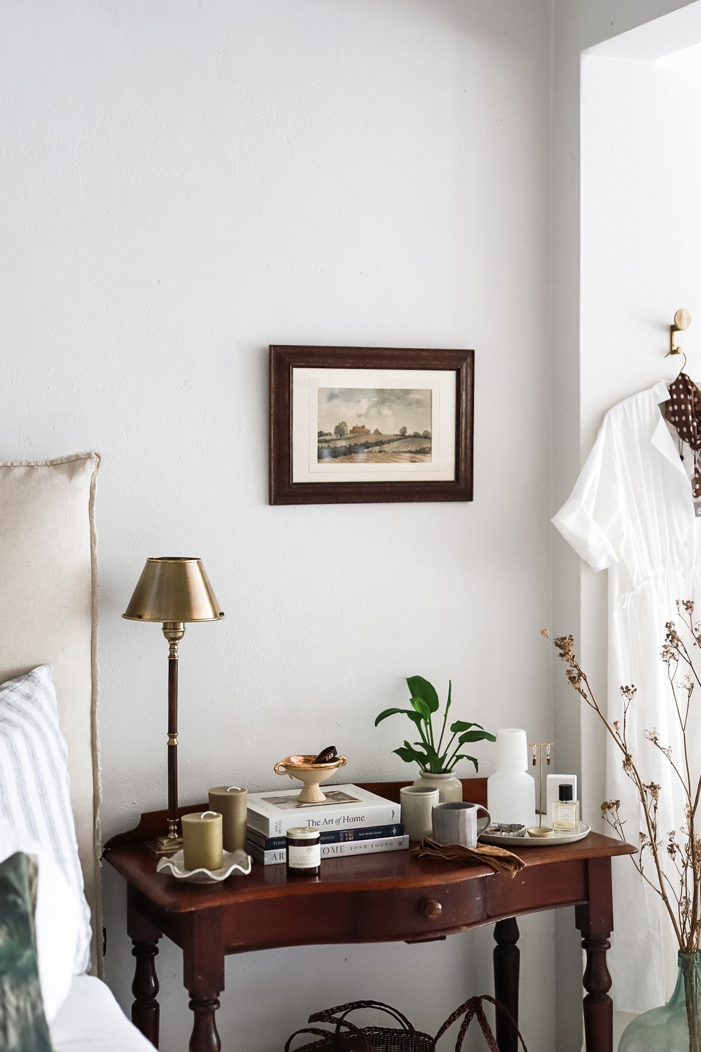 An original vintage watercolour painting under glass, in a dark timber frame.