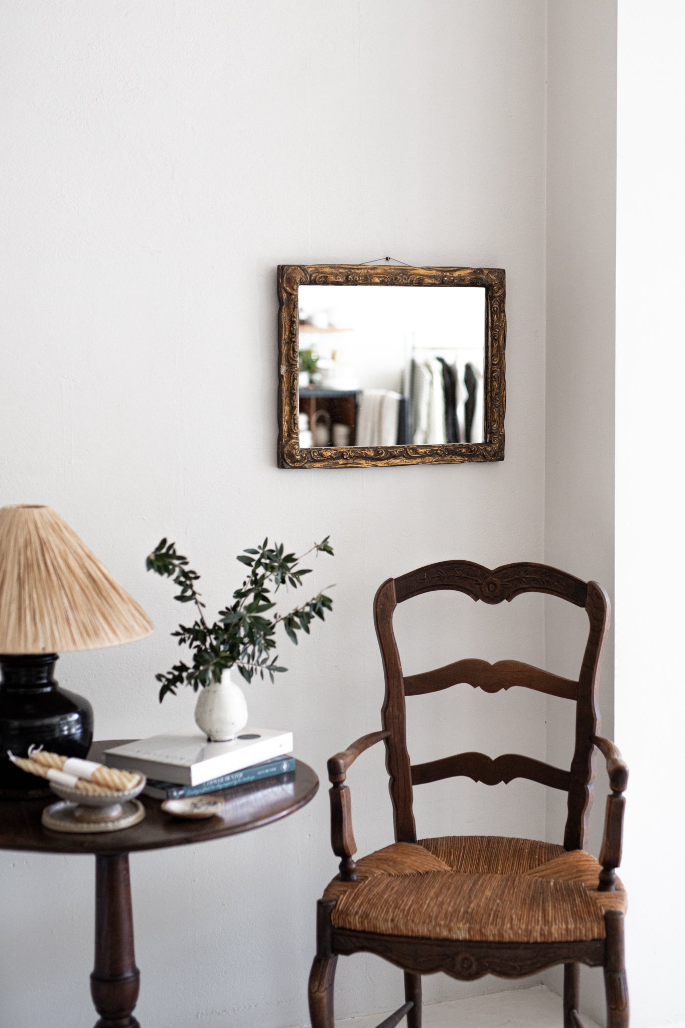 This stunning mirror adds provencial materiality to a space along with ambient reflections from the glass which is in excellent condition.
