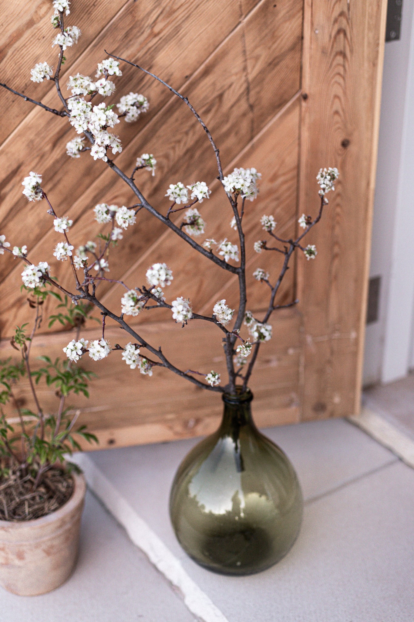 A stunning smaller French demijohn vessel, in a beautiful olive green tone.