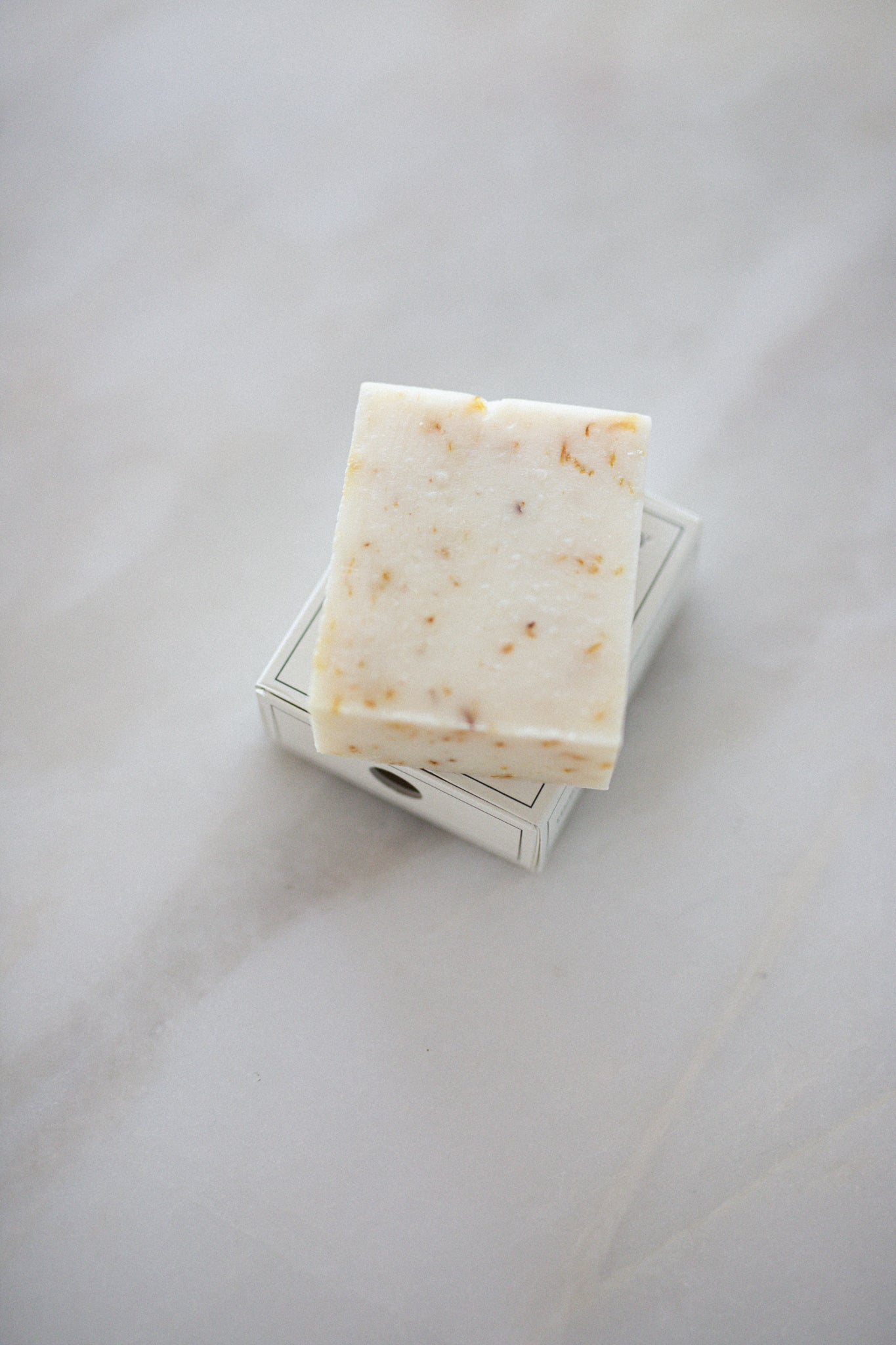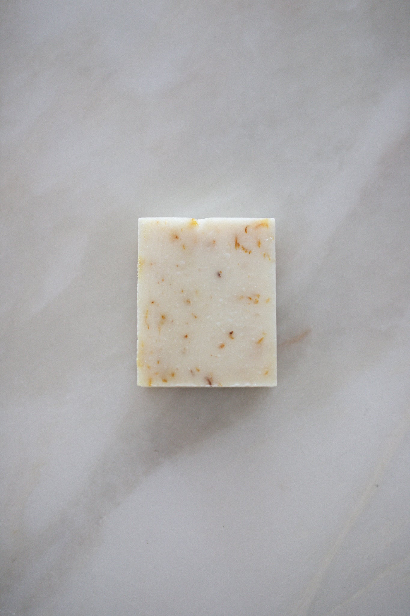Calendula flowers have long been known for their natural anti-inflammatory, anti-fungal, antimicrobial and antiviral properties. Used in a soap, it helps soothe and regenerate cells, while healing skin irritations and conditions, such as sunburn, cuts, acne, eczema, dermatitis, bites and rashes.