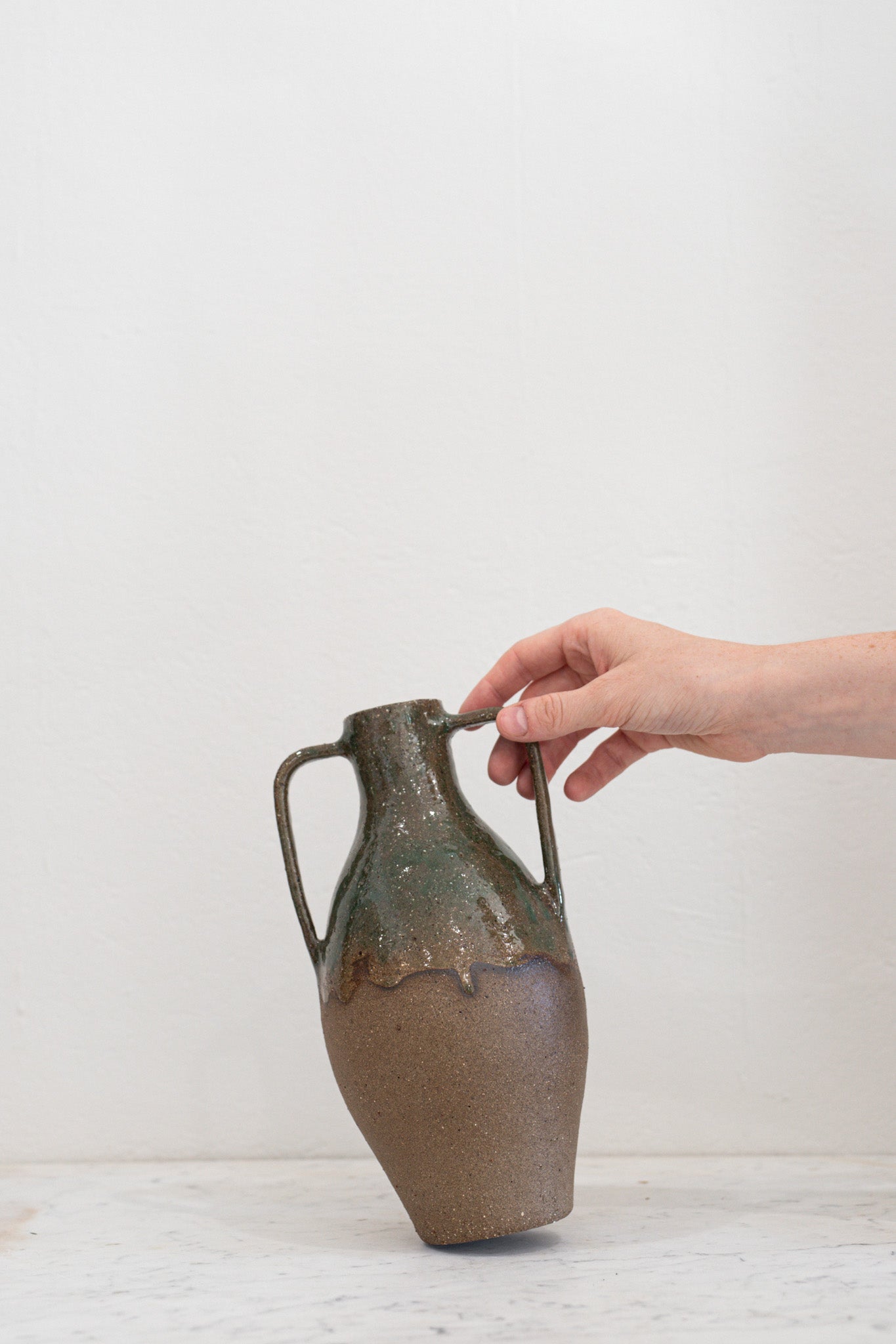 Handcrafted using dark brow clay and glazed with a beautiful transparent olive glaze.