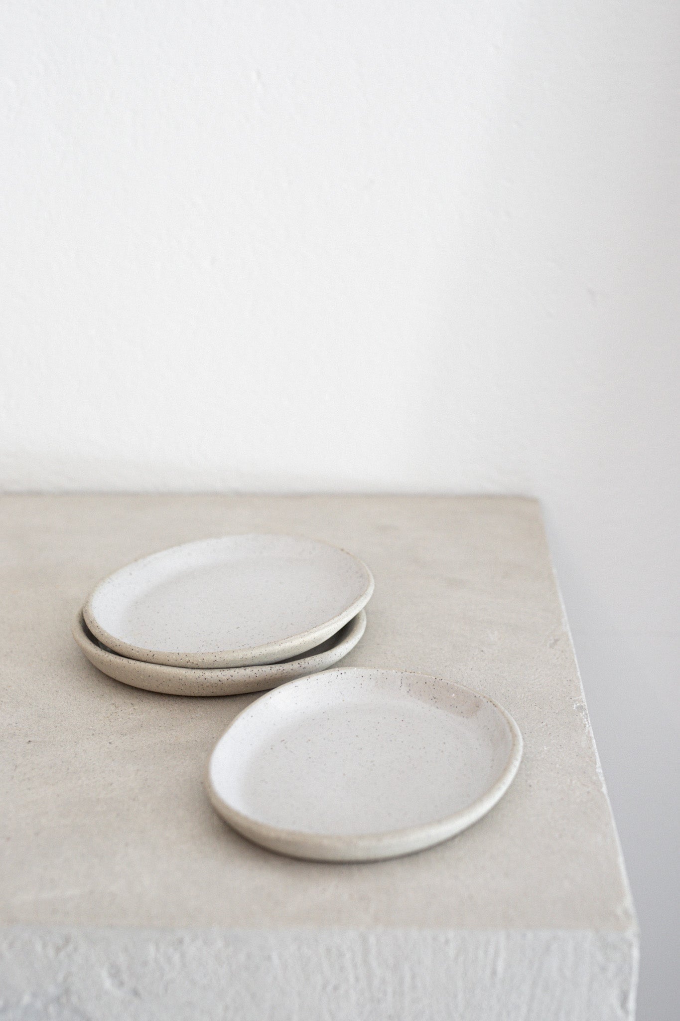 Each piece is shaped and glazed entirely by hand, creating a gorgeous organic feel with no two pieces exactly the same. The edges of and base of the pieces are left unglazed, creating a beautiful subtle contrast for classic white dinnerware with a twist.