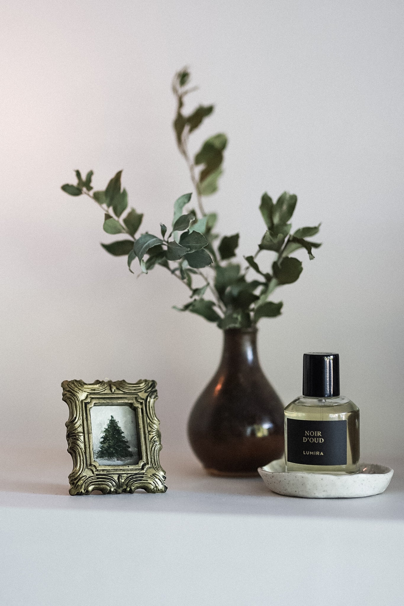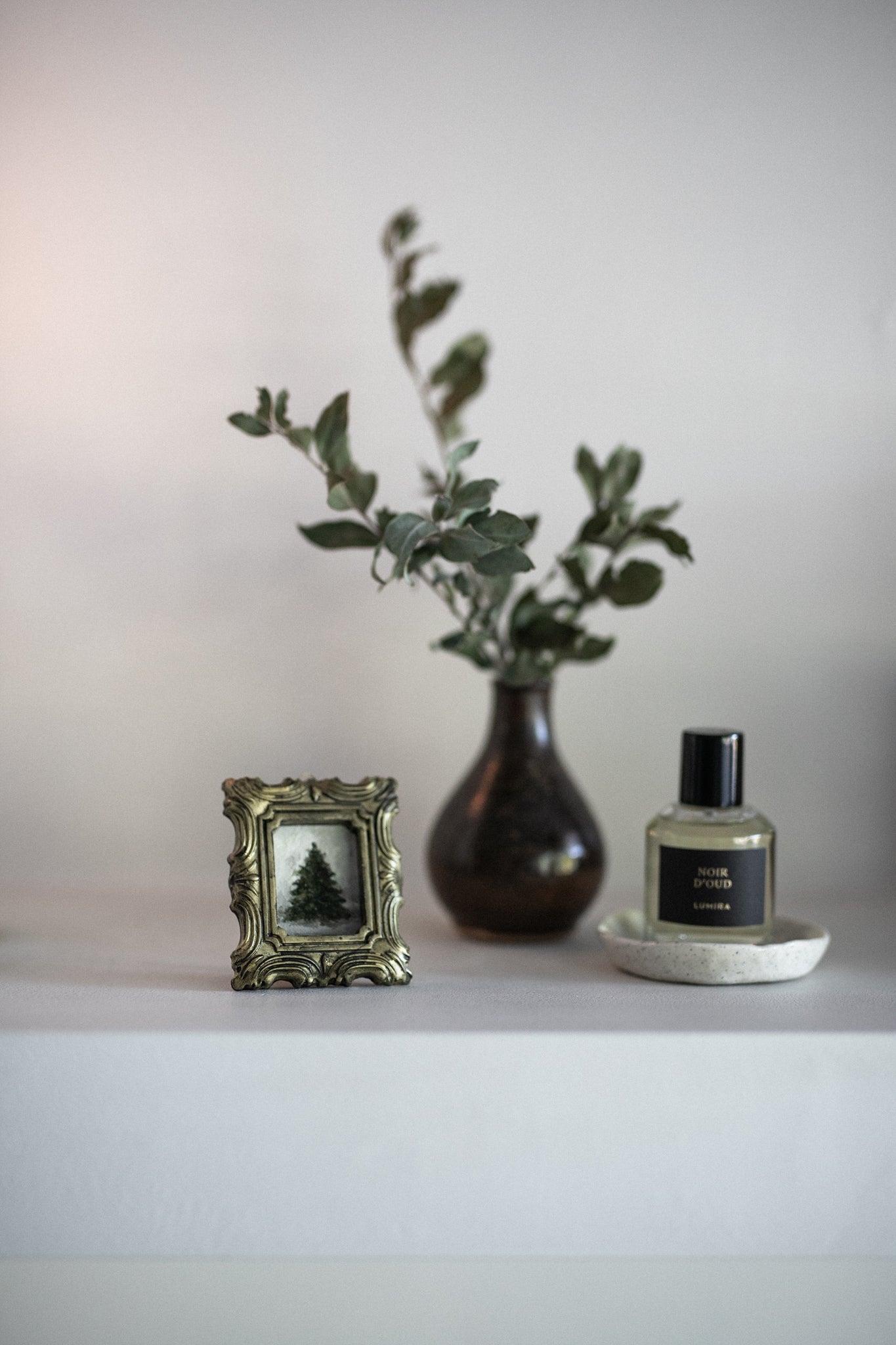 This artwork is painted in the finest of oil paints by Ruxandra Maille. It has been framed in a handmade ceramic gilt piece, with a backing that allows you to style the artwork on a special shelf, table, or hang on a wall.