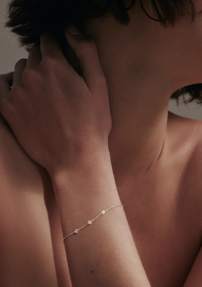 Embodying understated elegance, the Floating Stone Bracelet is perfect for layering or worn alone for ethereal adornment.