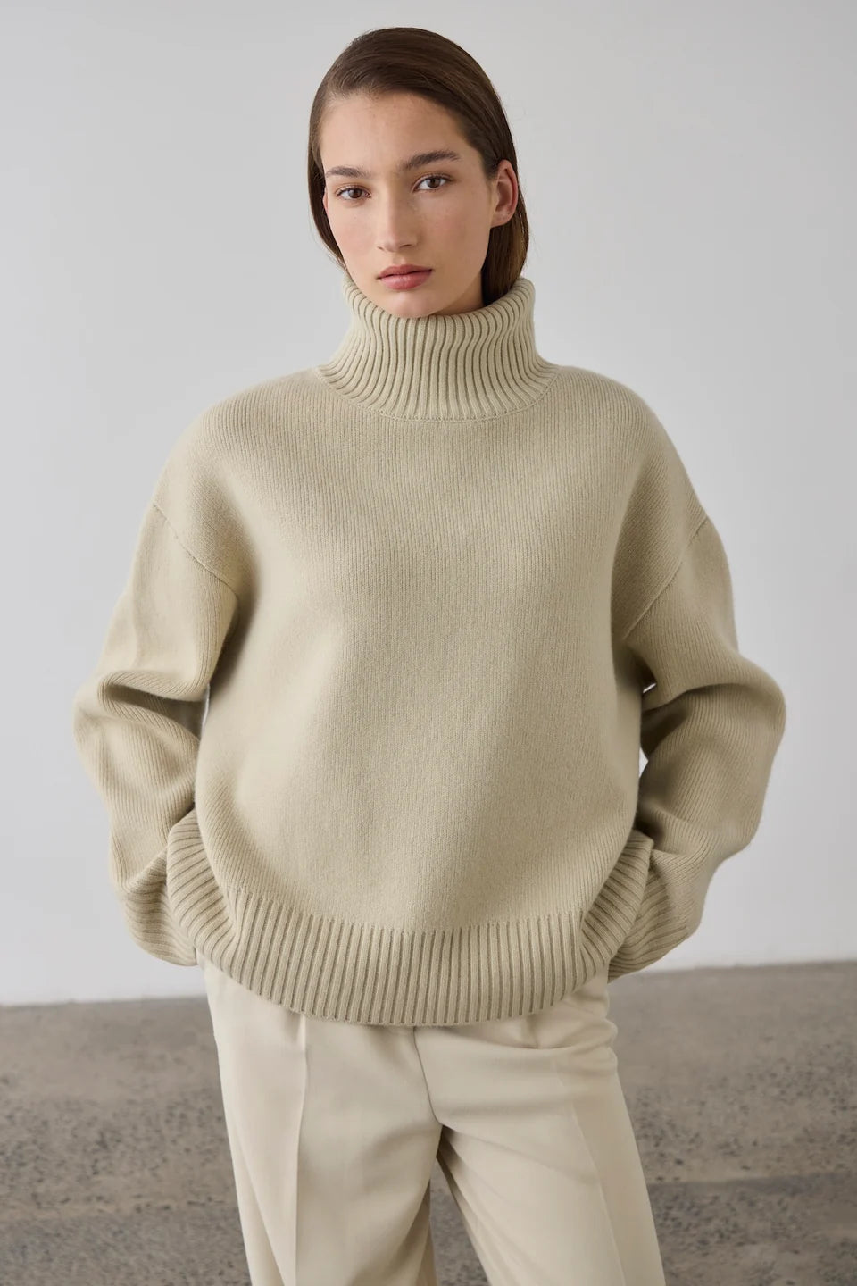 Purposely oversized and effortlessly slouchy, the Nico Sweater is designed for ultimate comfort. Knitted from 100% merino wool, it’s luxuriously soft, warm, and perfect for cold days. Fold yourself into its relaxed silhouette—your go-to for easy layering and understated style.