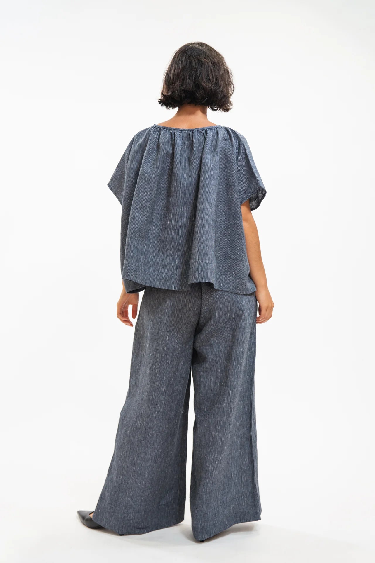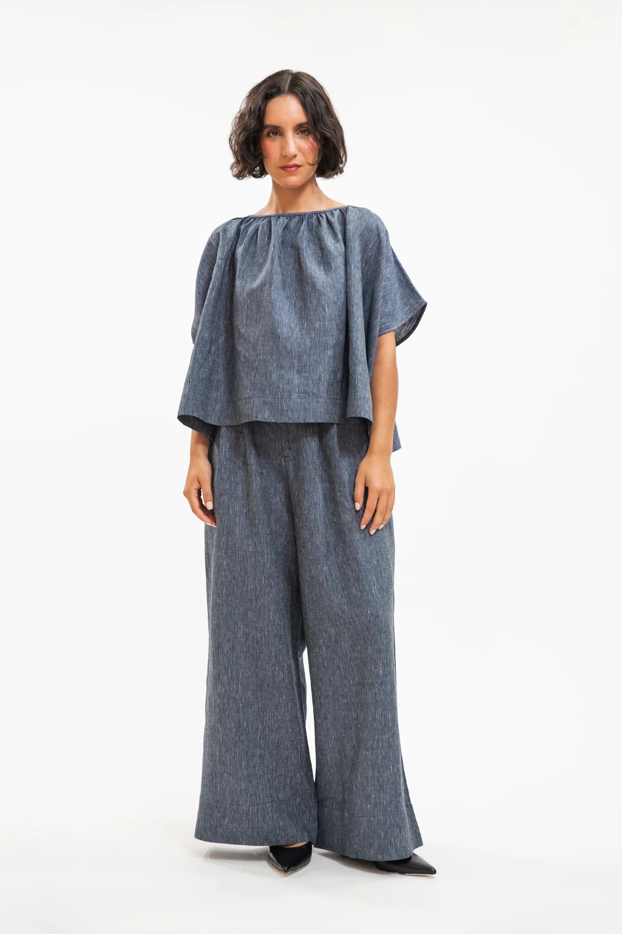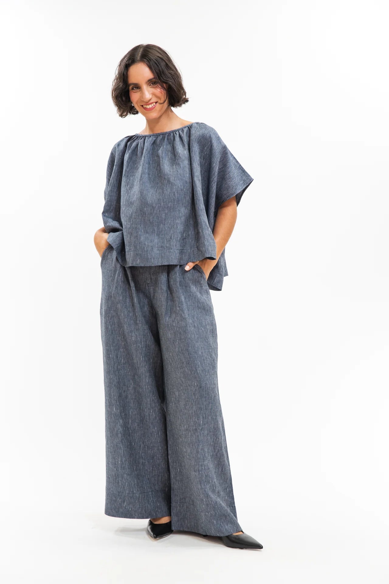 Poppy Top in Navy Pinstripe