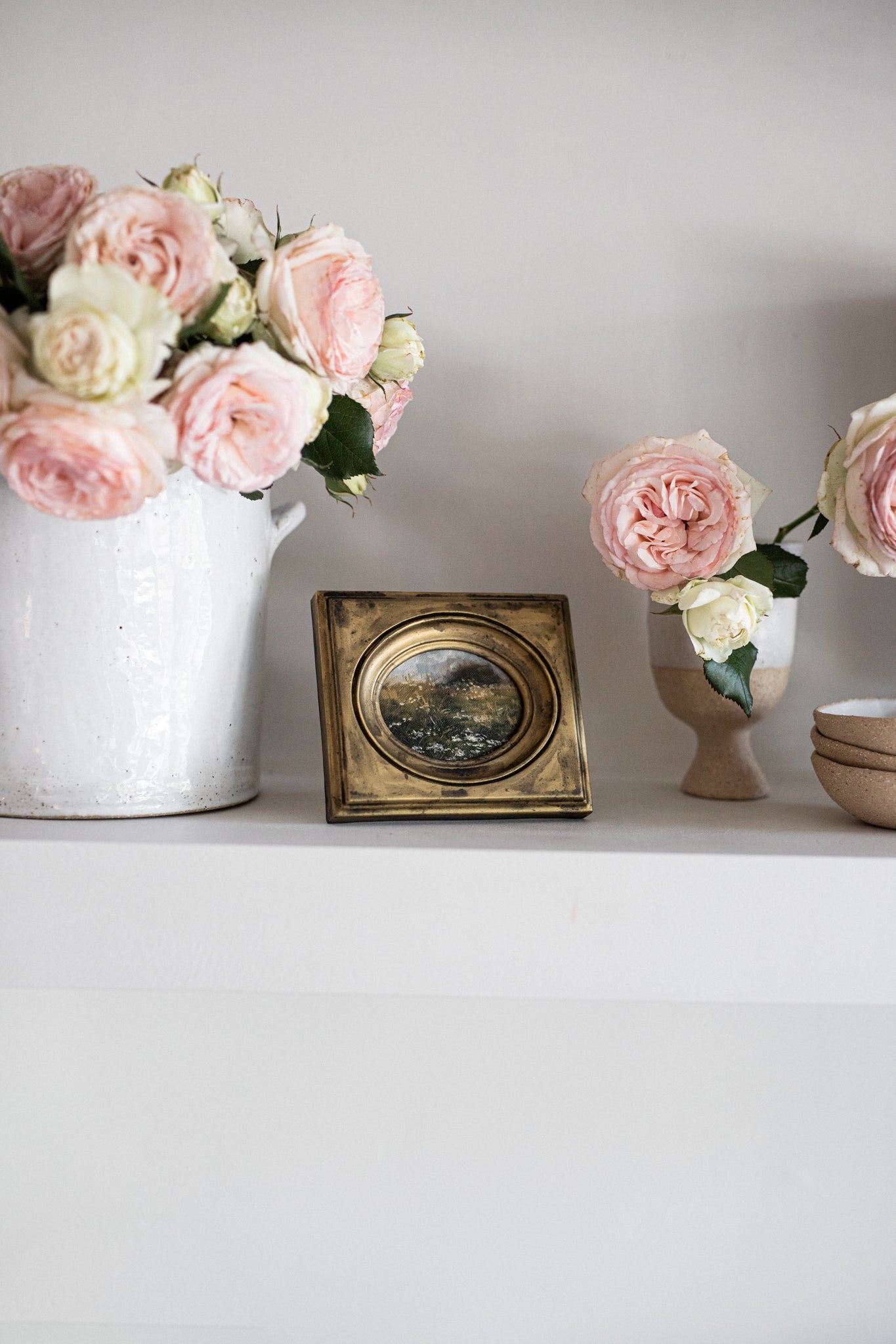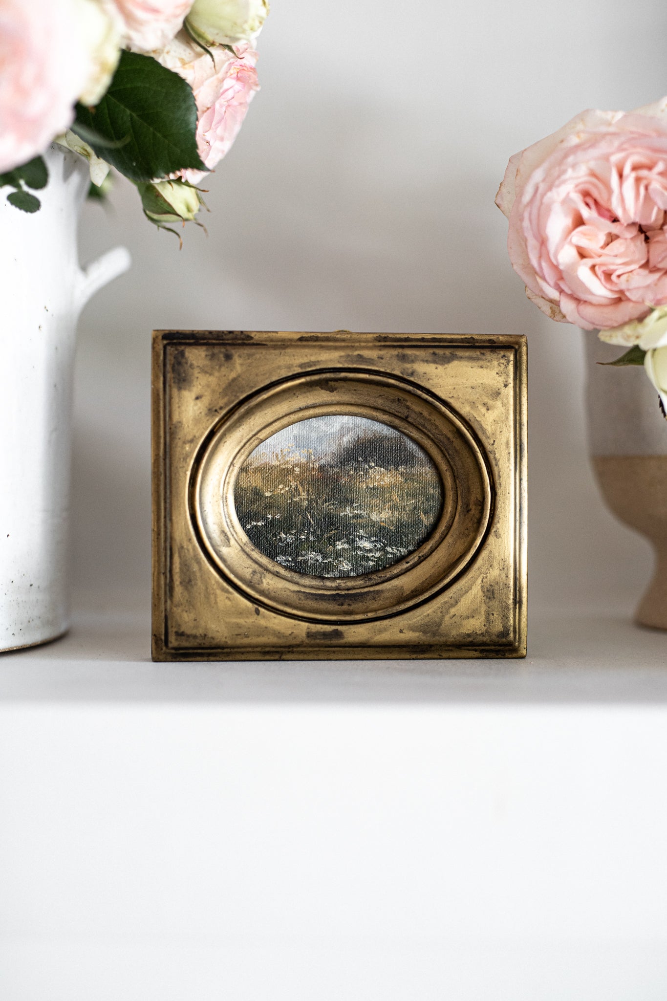 'The Wild Garden' represents our love for the rambling cottage garden interpreted within a petite French setting of fine proportions. Each artwork is painted in oils by Ruxandra Maille and then framed in a handmade ceramic gilt piece, with a backing that allows you to style the artwork on a special shelf, table, or hang on a wall.