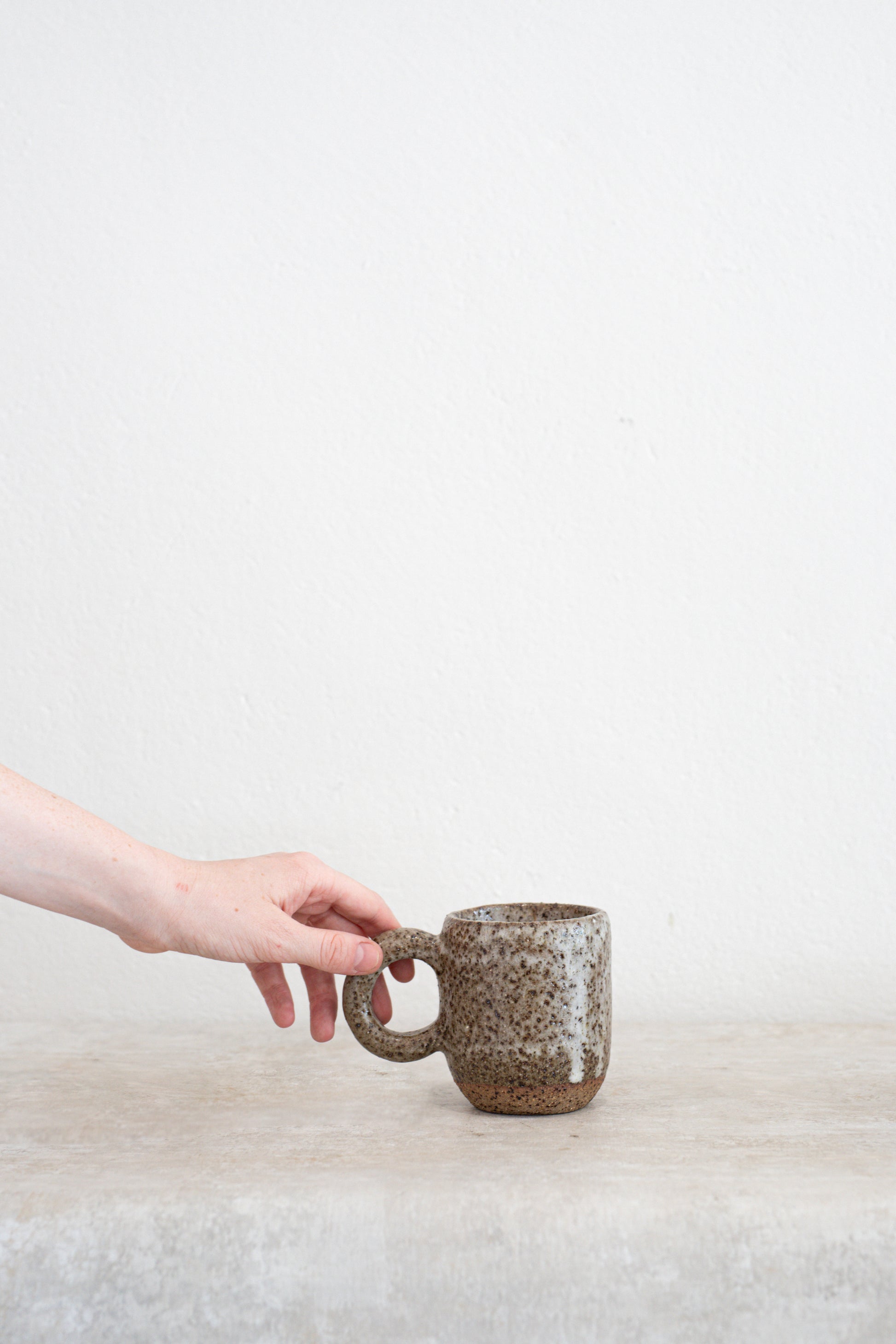 Ochre's Gumnut Mug is textually smooth, with a thin lip. Featuring a big oversized handle, glazed in a beautiful moss green, patterned with a soft milky white where the glaze is thickest, the lovely part about this glaze is no two pieces will ever be exactly the same But that's the beauty of them.