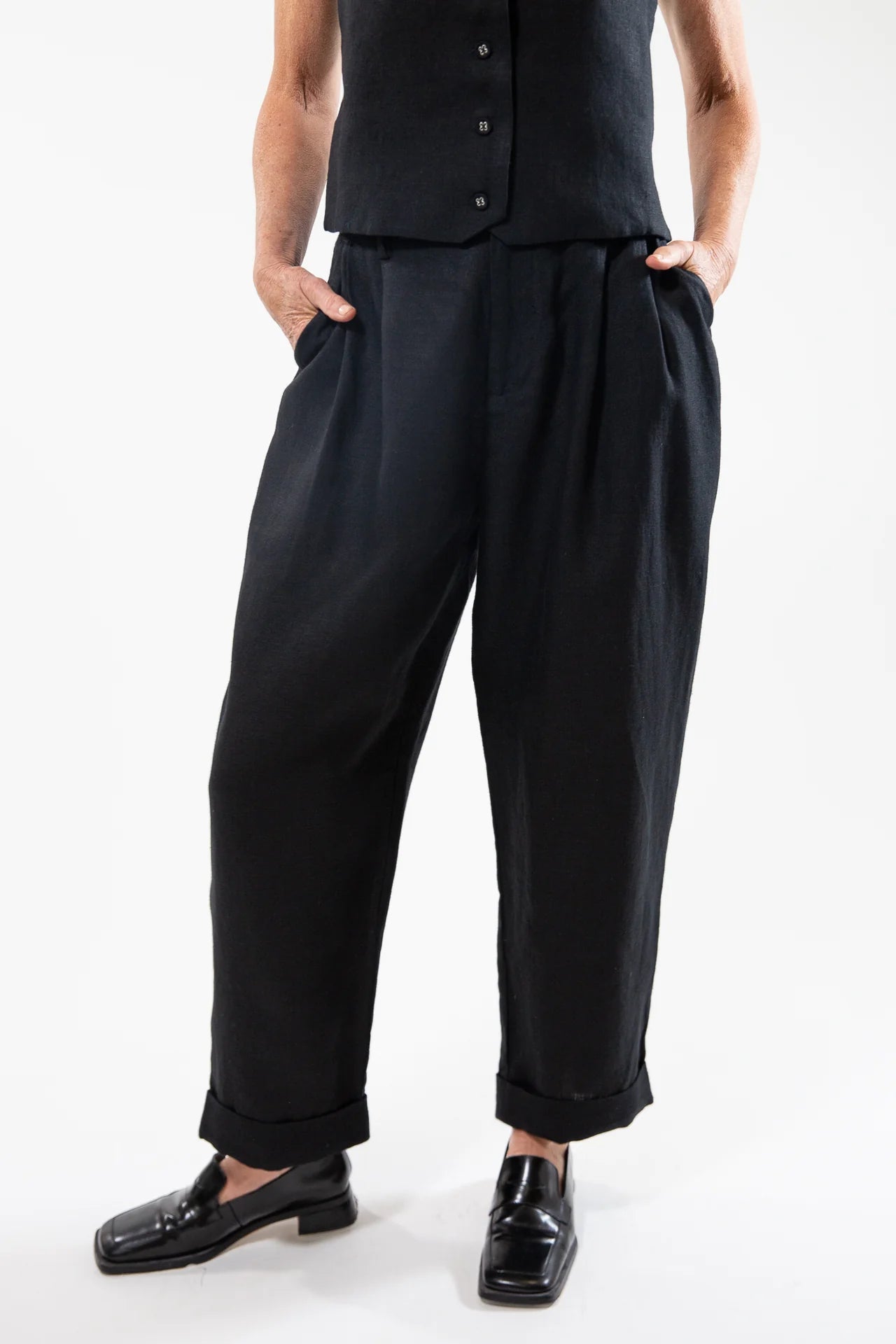 The Charlie Pant in Black Linen