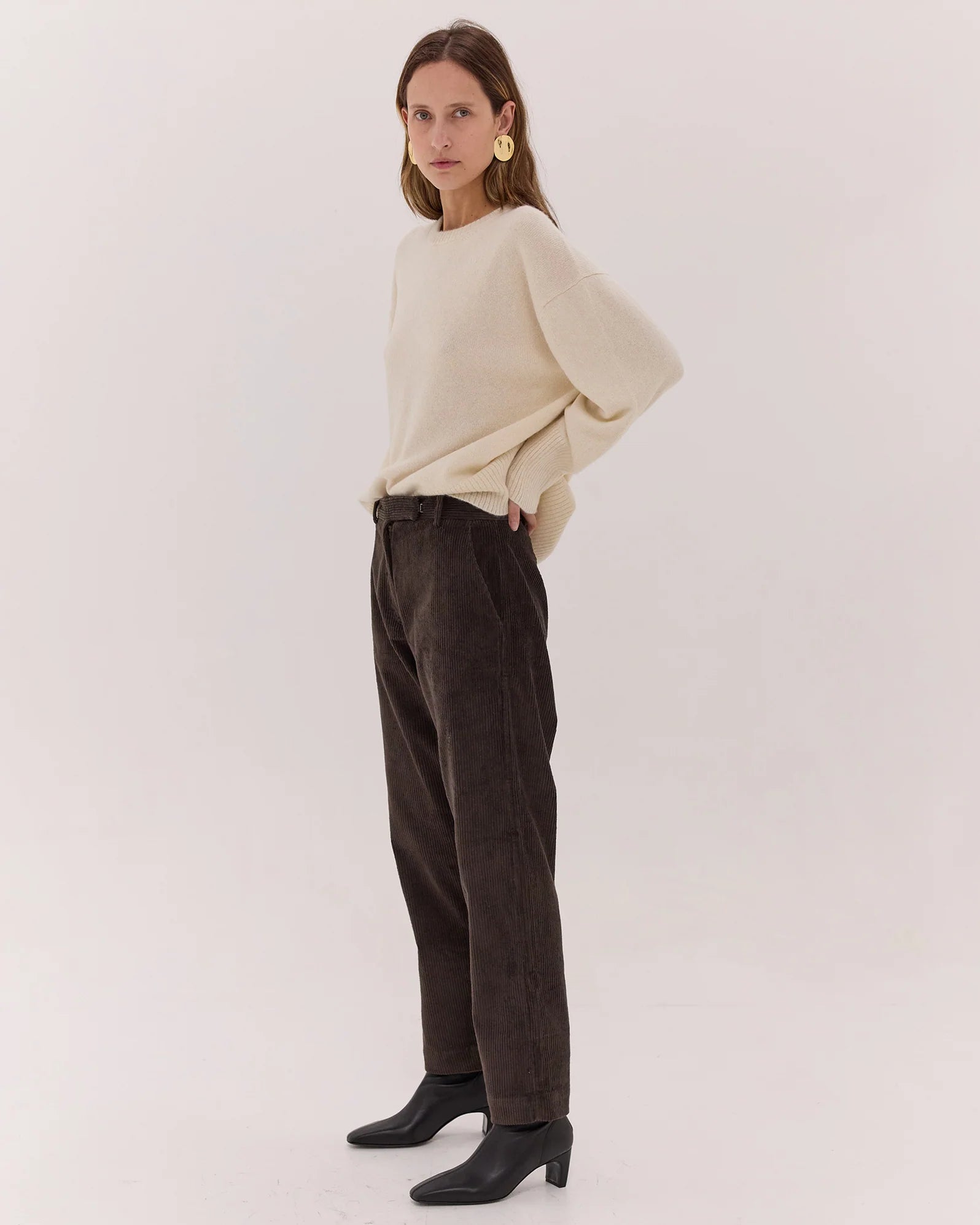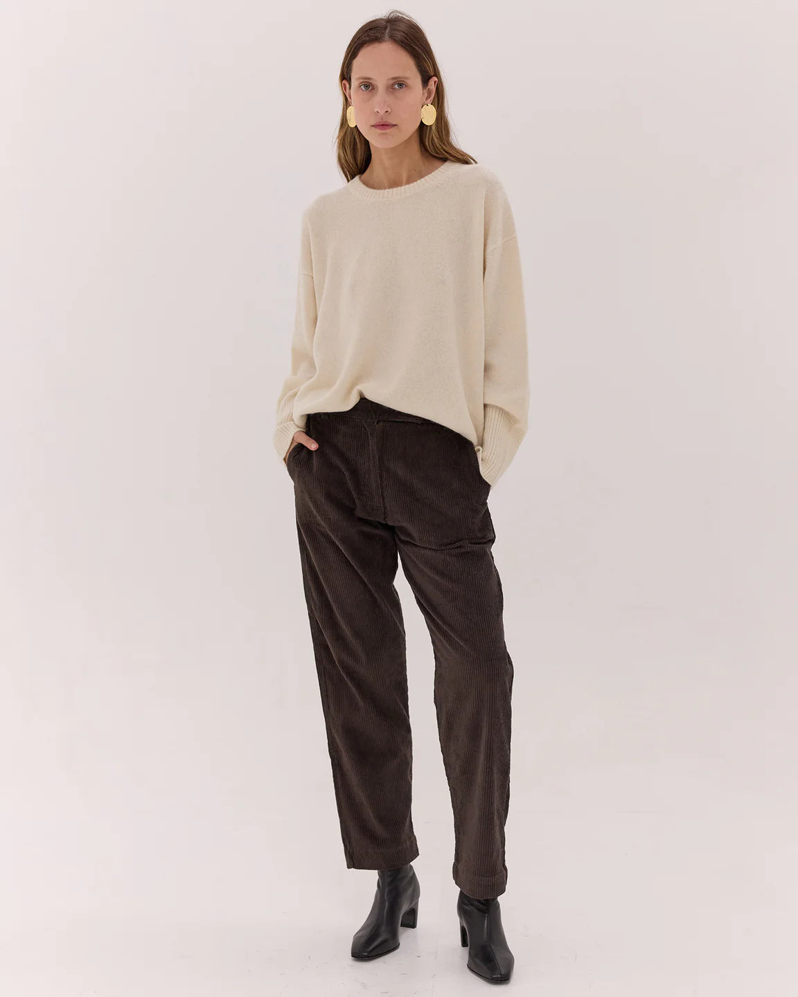 The Classic Crew Jumper in Winter White is crafted from a luxuriously soft blend of alpaca and cashmere, offering timeless comfort with a refined finish. With its relaxed silhouette and subtle texture, it’s an
