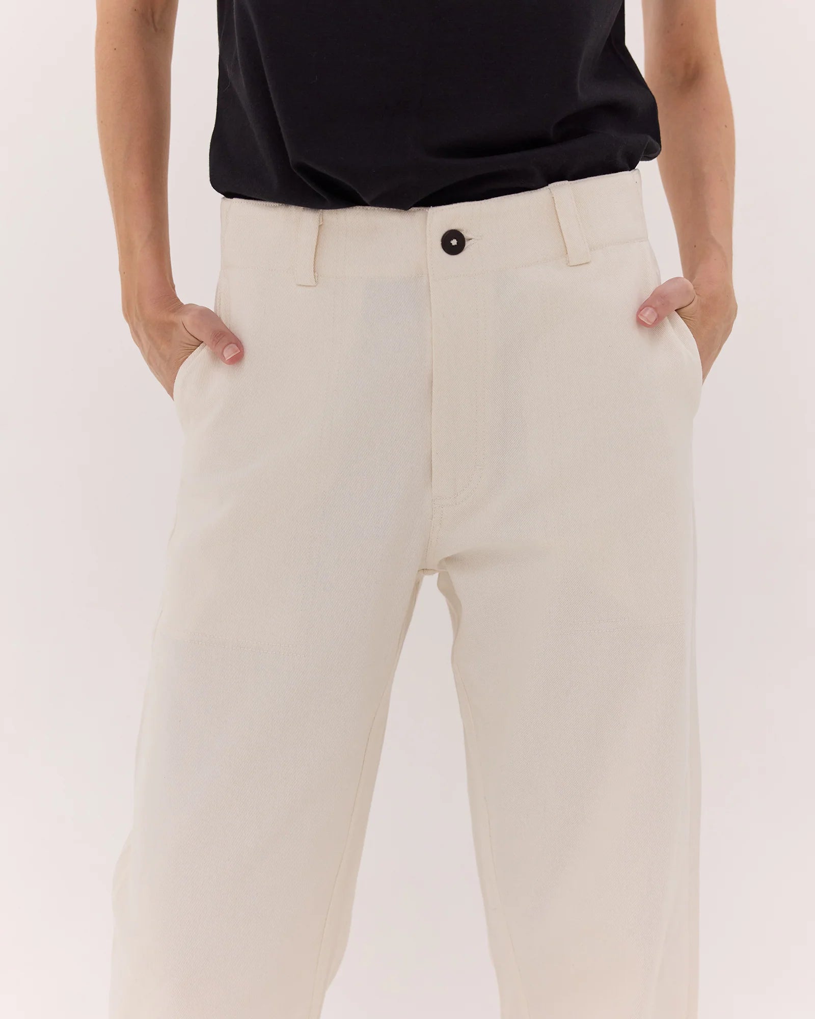Crafted from 100% organic cotton denim, the Wide Leg Jean is cut with a mid-rise waist and a full-length leg for a flattering, elongated silhouette. Designed with a zip fly and corozo button closure, detailed top stitching, and a lovely raw hem that can be cut to your desired length.
