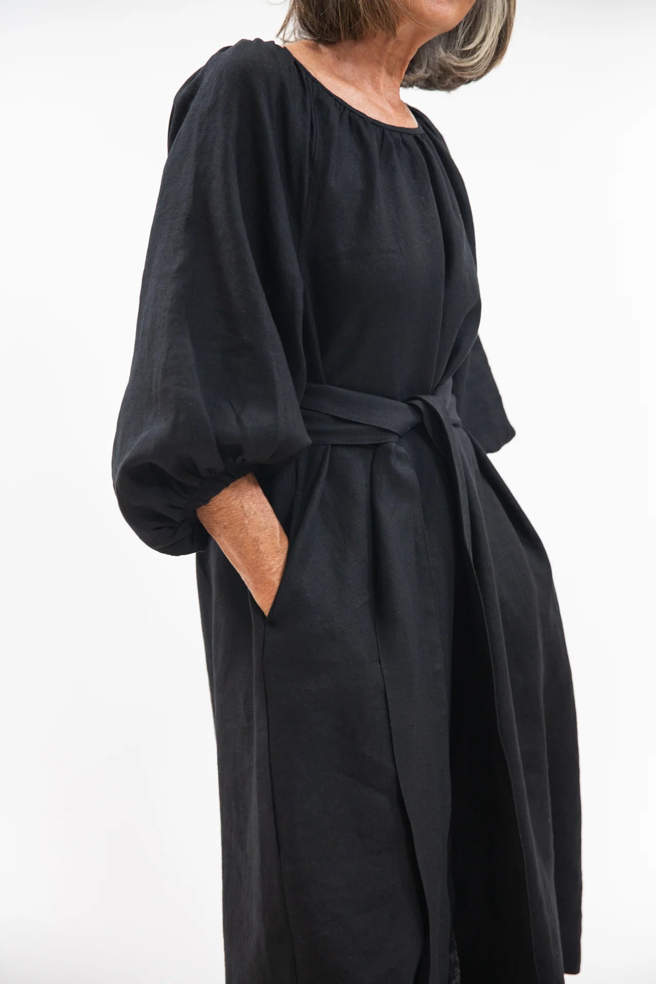 The Essentials Collection from Eva's Sunday tie belt in black linen is a wonderful multi-use accessory. Wear it as a belt tied around your waist to change the silhouette of a garment, tie it in a bow at the neck or use it as a wrap in your hair.