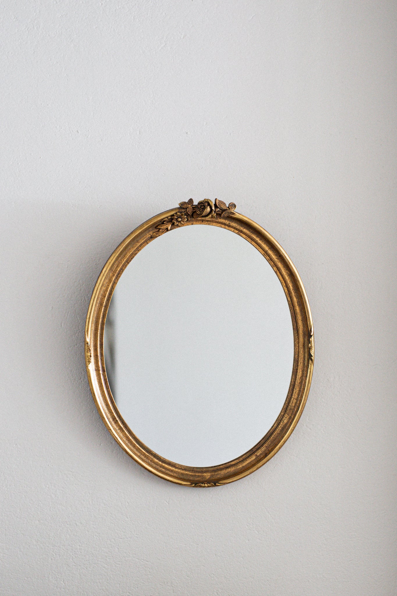 This special piece is decorated with the sweetest carved leaves & floral motif. The Oval frame is made in gesso and is in very good condition.