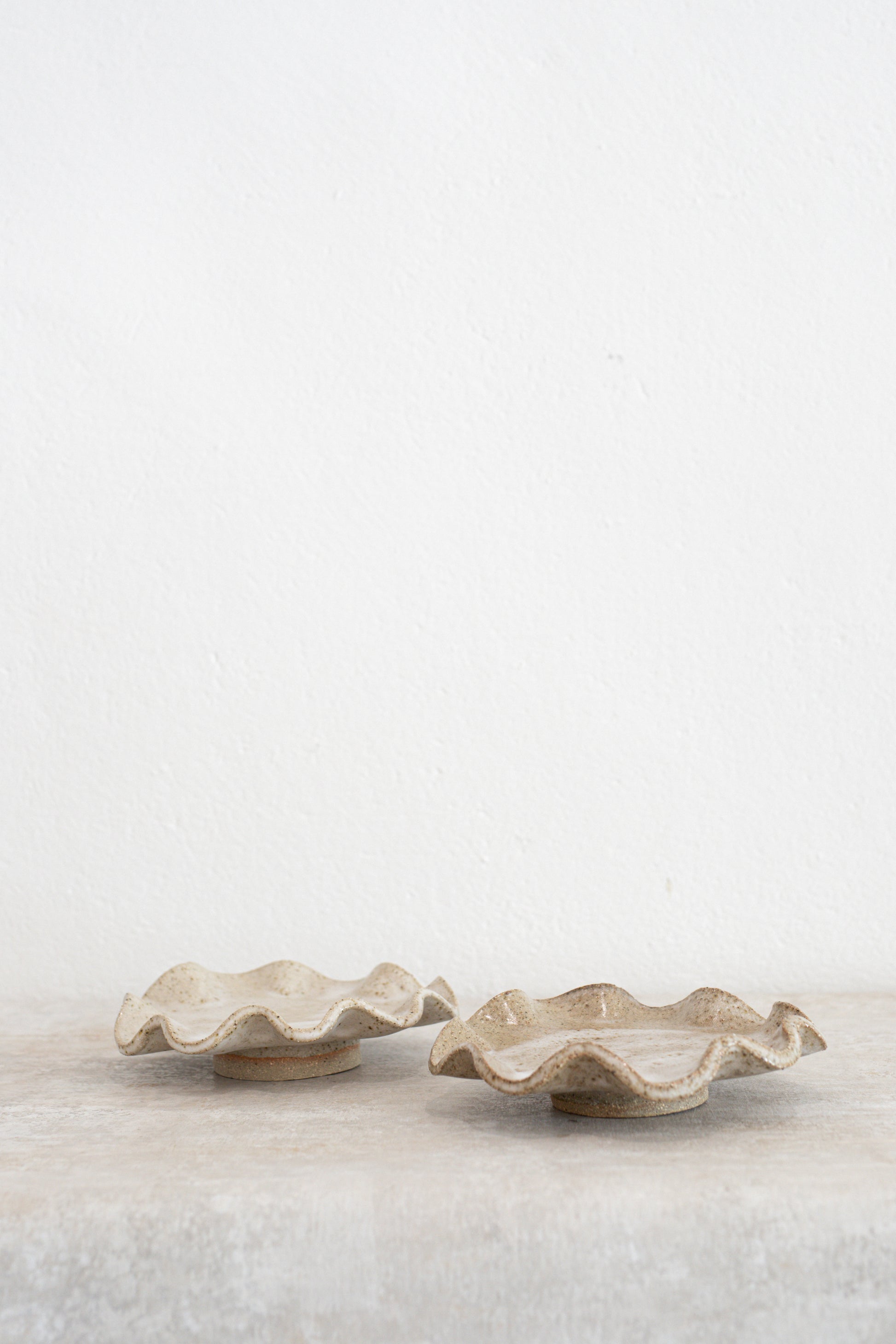 Detailing a rippled edge and a small elevated foot it is a perfect place to lay your collected pieces of jewellery, and looks pretty on a desk or table.